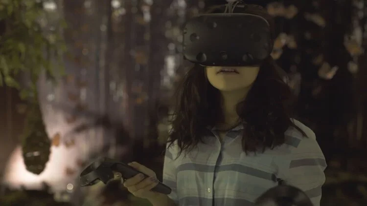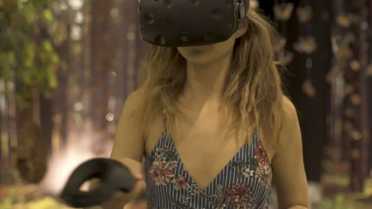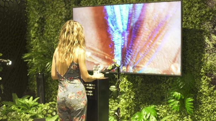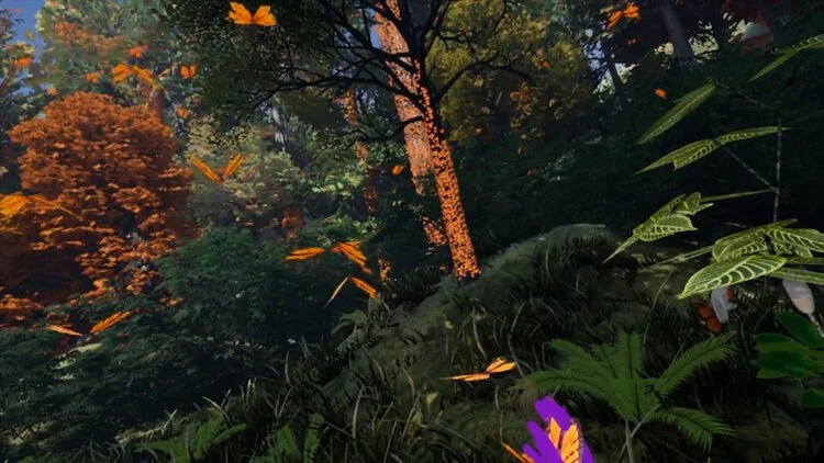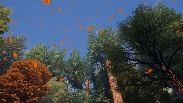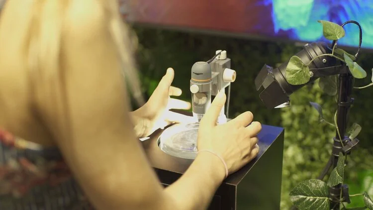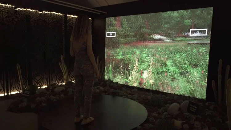 For this exhibition we carried out 4 interactive experiences that consisted of reactive led lights with a motion sensor that simulated the luminescent effect generated by fireflies, an experience with generative visuals of a dragonfly recorded with an interactive digital microscope, a game with a motion sensor to simulate jumps of cricket through a 3D environment displayed on a screen. And finally a VR experience to learn about the life process of the monarch butterfly.