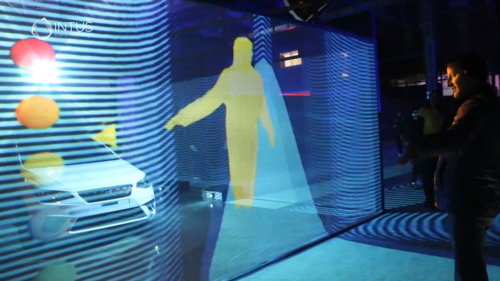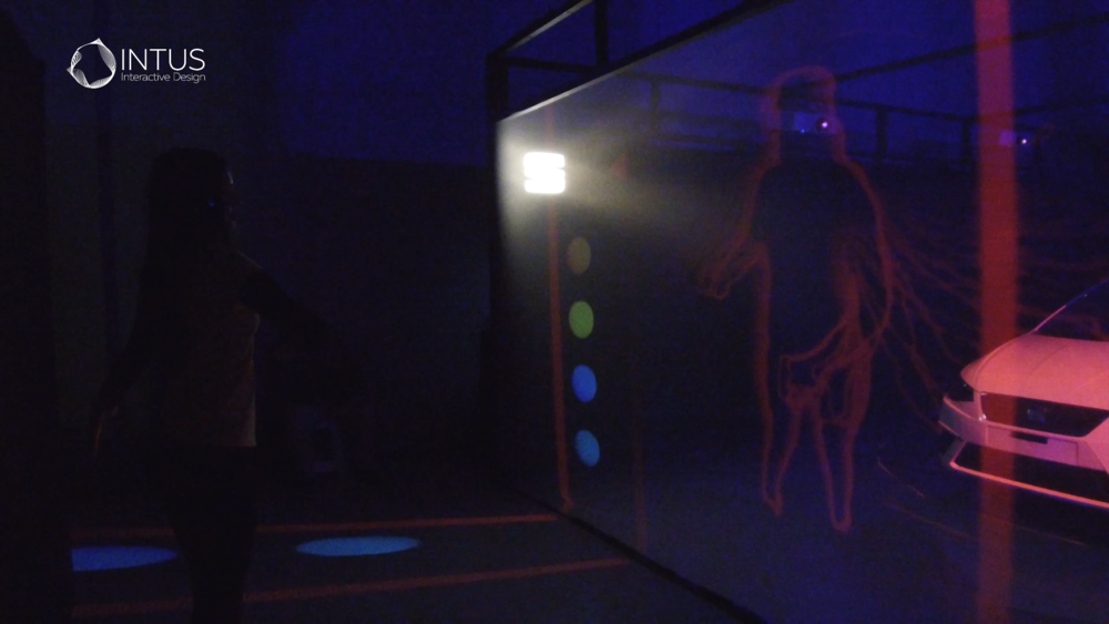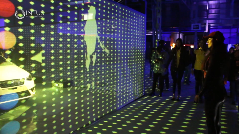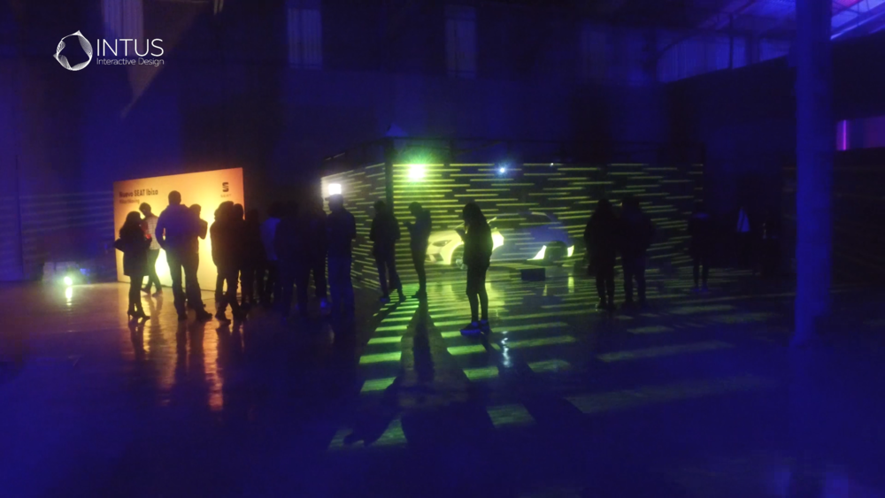 The installation developed entirely by INTUS INTERACTIVE DESIGN, shows the vehicle in a stand that stands out for the holographic fabrics that surround it and in which visuals are projected with which the public participates through movements captured by kinect sensors that surround the car, while it is projected by means of videomapping, in this way highlighting its silhouette and characteristic shapes that perfectly combine with the visuals that surround it.